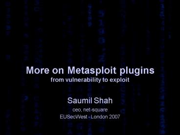 Title: More on Metasploit plugins from vulnerability to exploit