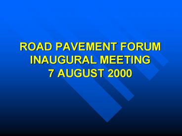 Title: ROAD PAVEMENT FORUM INAUGURAL MEETING 7 AUGUST 2000