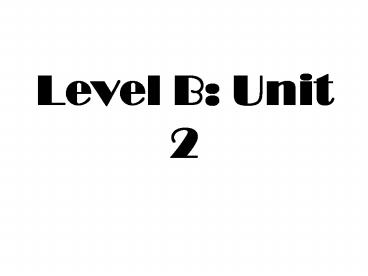 Level B: Unit 2 PowerPoint PPT Presentation