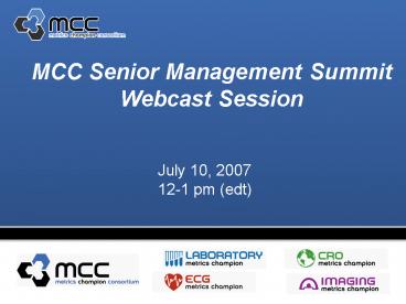 <Notice: Removed> MCC Senior Management Summit Webcast Session PowerPoint PPT Presentation