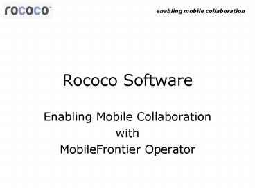 in mobile domain - 2003 Rococo joined Aeponas Developer Programme