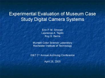 Title: Experimental Evaluation of Museum Case Study Digital Camera Systems
