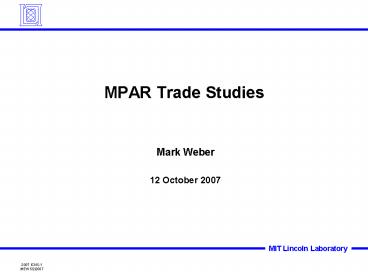 Title: MPAR Trade Studies