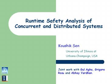 Runtime Safety Analysis of Concurrent and Distributed Systems PowerPoint PPT Presentation