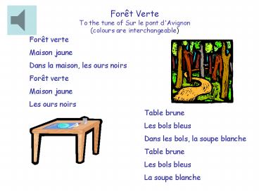 Forêt Verte To the tune of Sur le pont