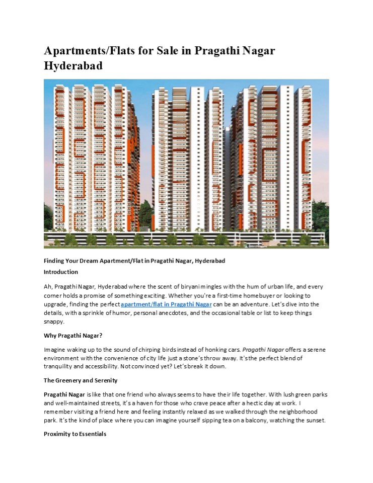 Title: Apartments/Flats for Sale in Pragathi Nagar Hyderabad