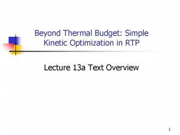 Title: Beyond Thermal Budget: Simple Kinetic Optimization in RTP