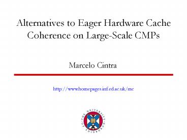 <Notice: Removed> Alternatives to Eager Hardware Cache Coherence on LargeScale CMPs PowerPoint PPT Presentation
