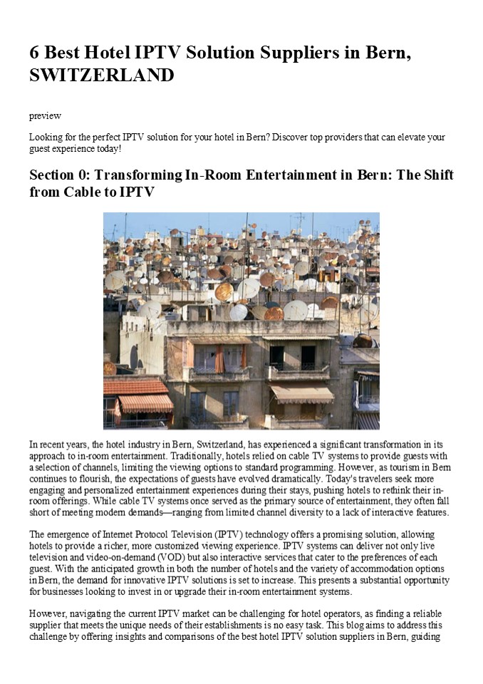 Title: 6 Best Hotel IPTV Solution Suppliers in Bern, SWITZERLAND