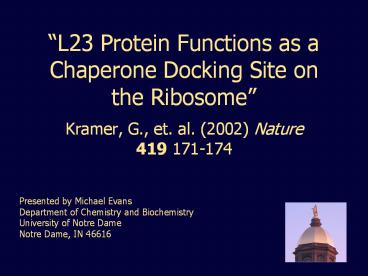 - Kramer, G., et. al. (2002) Nature 419 171-174