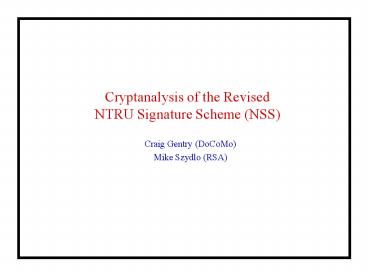 Craig Gentry (DoCoMo) Mike Szydlo (RSA)