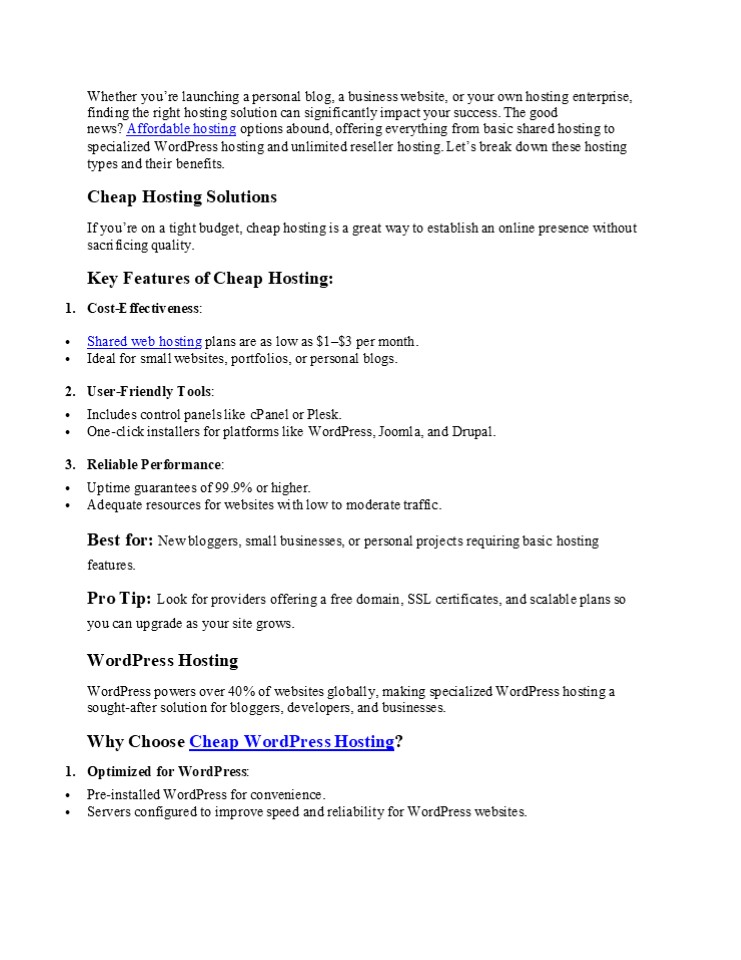 Affordable hosting options are widely available to meet diverse needs. Whether youre seeking