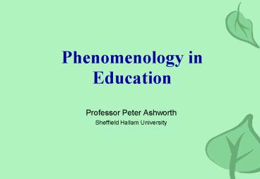 Title: Phenomenology in Education