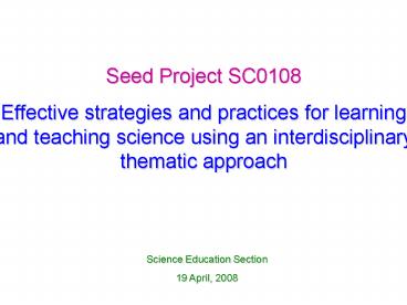 interdisciplinary thematic approach. - To develop resources and teacher network for
