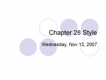 Chapter 28 Style. Wednesday, Nov 13, 2007. Clarity and directness ... The crime rate is increasing because more criminals live on the street. Repetition ... – PowerPoint PPT presentation