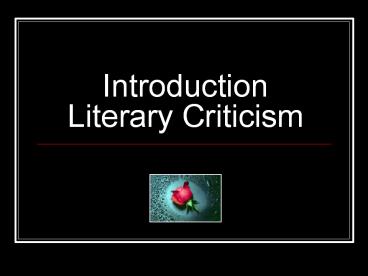 <Notice: Removed> Introduction Literary Criticism PowerPoint PPT Presentation