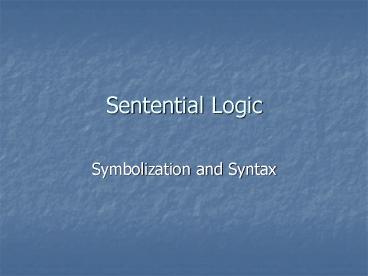 Sentential Logic PowerPoint PPT Presentation