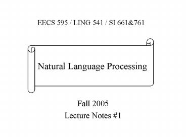 - EECS 597 / LING 792 / SI 661 Language and
