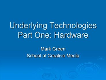 <Notice: Removed> Underlying Technologies Part One: Hardware PowerPoint PPT Presentation