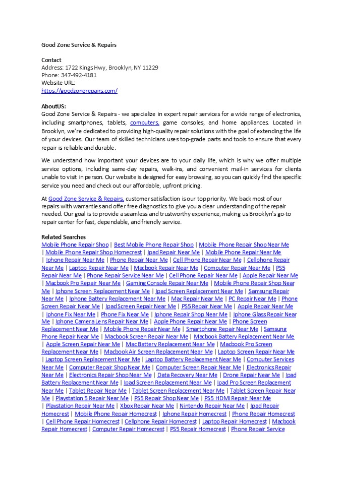 347-492-4181 Website URL https//goodzonerepairs.