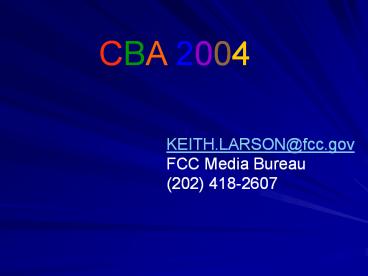 Title: CBA 2004 Technical Presentation