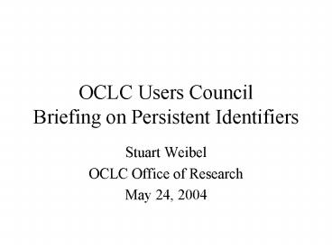 Title: OCLC Users Council Briefing on Persistent Identifiers