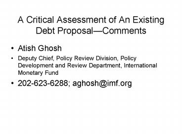 Title: A Critical Assessment of An Existing Debt ProposalComments