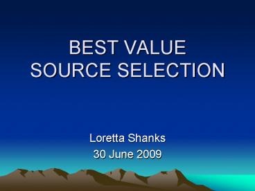 BEST VALUE SOURCE SELECTION PowerPoint PPT Presentation