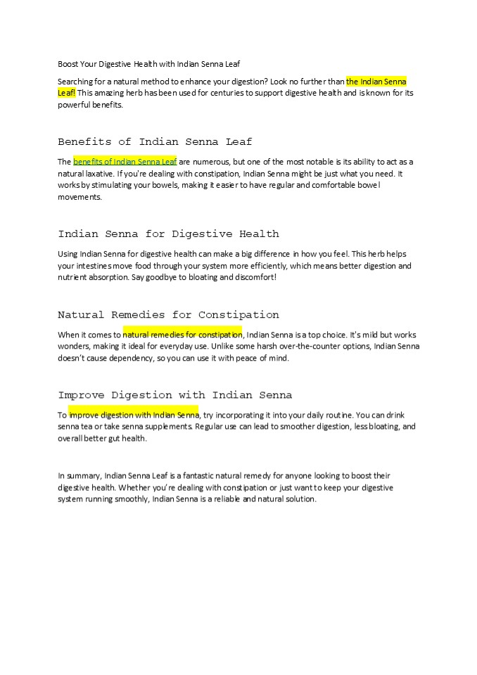 Title: Boost Your Digestive Health with Indian Senna Leaf