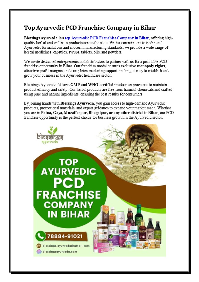 Title: Top Ayurvedic PCD Franchise Company in Bihar