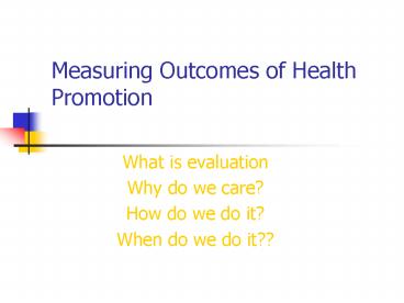 Measuring Outcomes of Health Promotion PowerPoint PPT Presentation