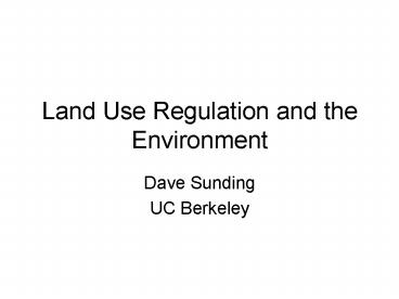 Land Use Regulation and the Environment PowerPoint PPT Presentation