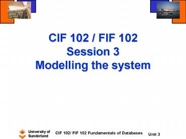 Title: CIF 102 FIF 102 Session 3 Modelling the system