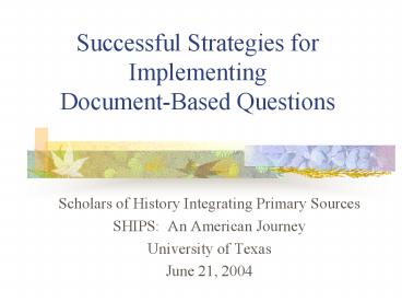 Title: Successful Strategies for Implementing DocumentBased Questions