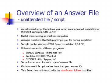 <Notice: Removed> Overview of an Answer File unattended file script PowerPoint PPT Presentation