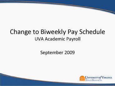 1Change to Biweekly Pay ScheduleUVA Academic