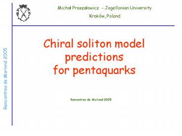 Title: Chiral soliton model predictions for pentaquarks