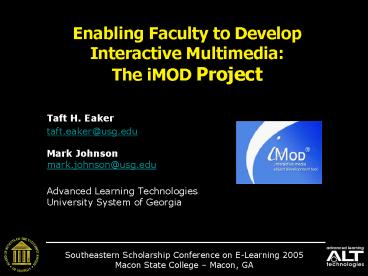 Title: Enabling Faculty to Develop Interactive Multimedia: The iMOD Project