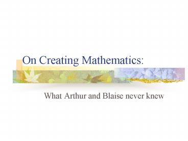 <Notice: Removed> On Creating Mathematics: PowerPoint PPT Presentation