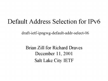 Default Address Selection for IPv6 PowerPoint PPT Presentation