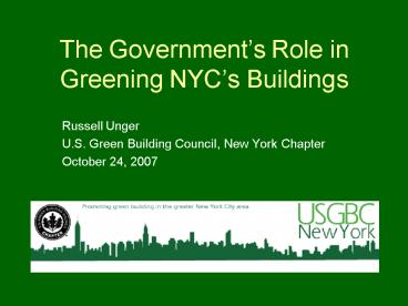 The Governments Role in Greening NYCs Buildings PowerPoint PPT Presentation