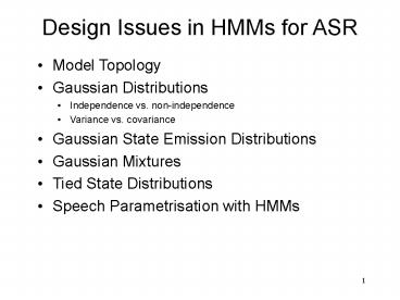 Design Issues in HMMs for ASR