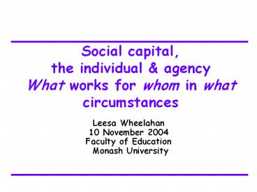 13) - Lin (2001 6) groups Bourdieu, Coleman Putnam
