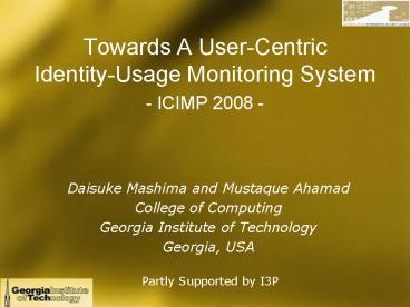 <Notice: Removed> Towards A UserCentric IdentityUsage Monitoring System ICIMP 2008 PowerPoint PPT Presentation