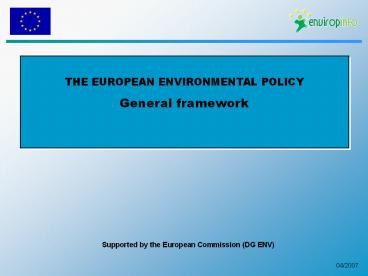 1 THE EUROPEAN ENVIRONMENTAL POLICY General