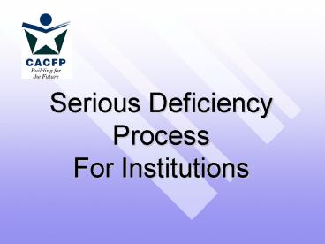 Serious Deficiency Process For Institutions PowerPoint PPT Presentation