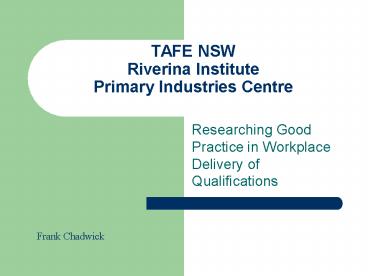 TAFE NSW Riverina Institute Primary Industries Centre PowerPoint PPT Presentation