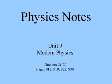 Physics Notes PowerPoint PPT Presentation