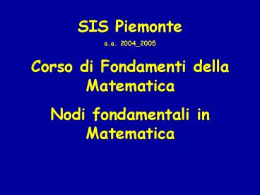 1SIS Piemonte a.a. 2004_2005 Corso di Fondamenti