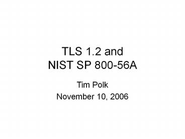 TLS 1.2 and NIST SP 800-56A PowerPoint PPT Presentation